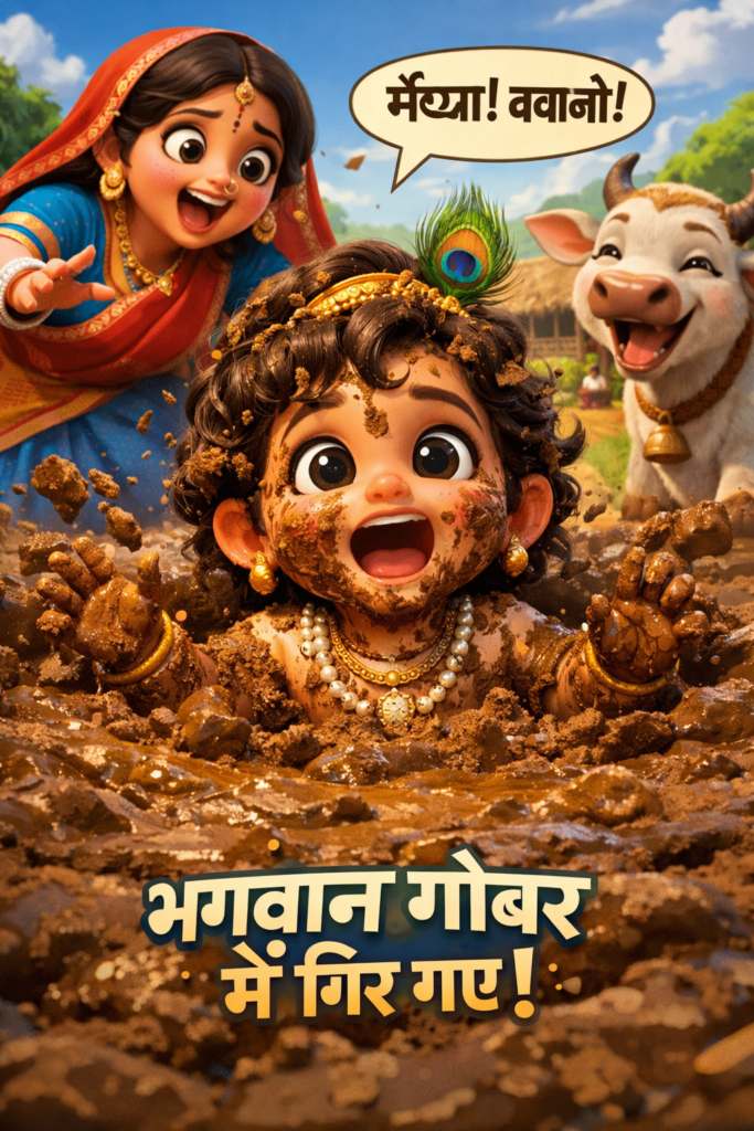 “рдореИрдпрд╛! рдмрдЪрд╛рдУ! рдпреЗ рдЧреИрдпрд╛ рдореБрдЭреЗ рдЧреЛрдмрд░ рдореЗрдВ рдлреЗрдВрдХ рд░рд╣реА рд╣реИ!”