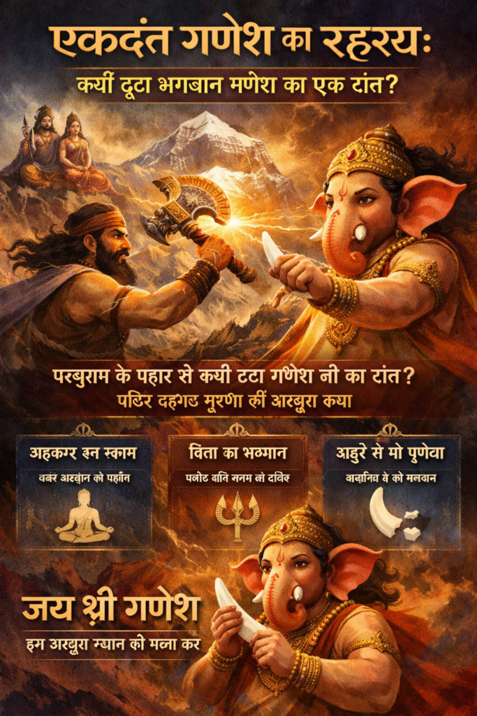 भगवान गणेश का टूटा हुआ दांत कोई साधारण प्रतीक नहीं, बल्कि त्याग, मर्यादा, कर्तव्य और सम्मान का दिव्य संदेश है।