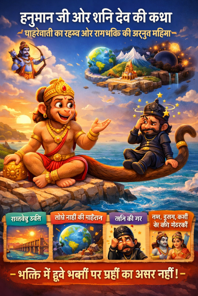 भारतीय आध्यात्मिक परंपरा में देवताओं की कथाएँ केवल मनोरंजन नहीं हैं, वे जीवन का गूढ़ विज्ञान सिखाती हैं। ऐसी ही एक अत्यंत प्रसिद्ध और प्रेरणादायक कथा है – हनुमान जी और शनि देव की कथा।