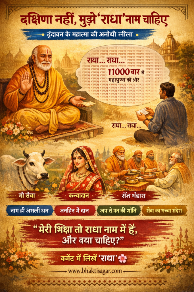 “मेरी भिक्षा रुपयों में नहीं, राधा नाम में है।”